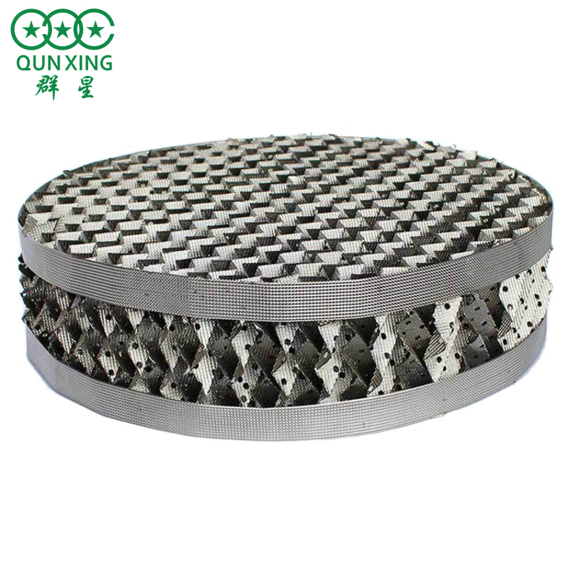 金屬孔板波紋填料具有通量大、阻力些、效率高、抗堵能力強(qiáng)的優(yōu)點(diǎn)。在精餾、吸收、吸取等單元操作中廣泛應(yīng)用。