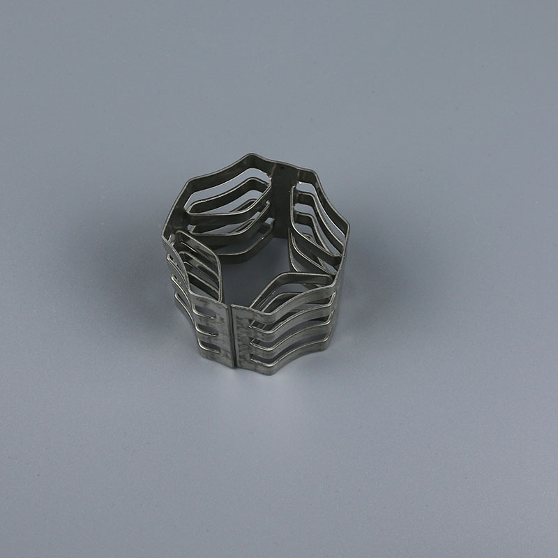 金屬八四內(nèi)弧環(huán)填料,它類似花環(huán)開關(guān)的金屬填料,也稱麥勒環(huán)填料。它的特點是環(huán)壁開敞面積大,所以具有通量大、阻力小和傳質(zhì)等特點。金屬填料八四內(nèi)弧環(huán),是以碳鋼、不銹鋼及鋁合金等材料制成的。應(yīng)用于石化、化肥、化工、環(huán)保、制藥、制糖等行業(yè)的填料塔中。