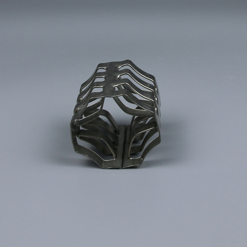 金屬八四內(nèi)弧環(huán)填料,該填料在填裝時排列規(guī)則趨于規(guī)整化,具有規(guī)整填料的效應(yīng),并具有高傳質(zhì)效率,和較低的阻力降,可廣泛用于各種操作條件下的蒸餾,吸收,氣提、萃取等傳質(zhì)操作。工業(yè)上,由于填料塔結(jié)構(gòu)簡單,操作方便而得到了廣泛應(yīng)用,其核心構(gòu)件填料也因此而得到了廣泛的研究.